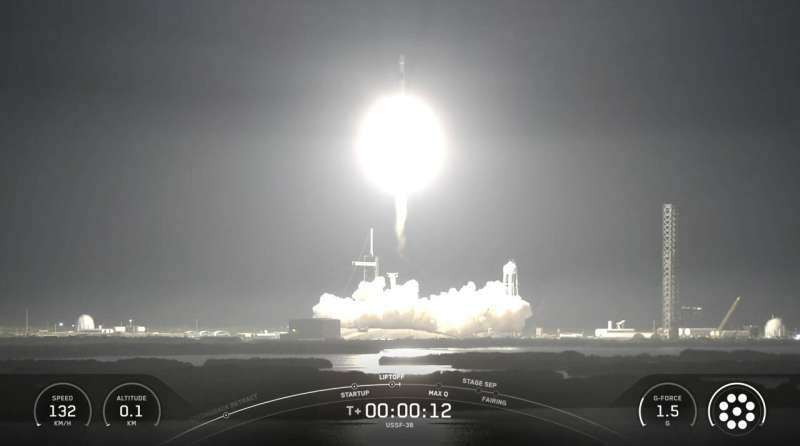 Launched by SpaceX, the space plane with no one aboard took off from Cape Canaveral, Florida. It’s the eighth such flight for the test vehicles known as X-37B. This one will test laser communications and safe navigation without GPS, according to the U.S. Space Force.