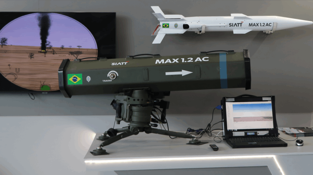 Brazil’s MAX 1.2 AC uses laser‑guided precision and all‑weather thermal imaging to deliver long‑range, line‑of‑sight strikes on armored targets.