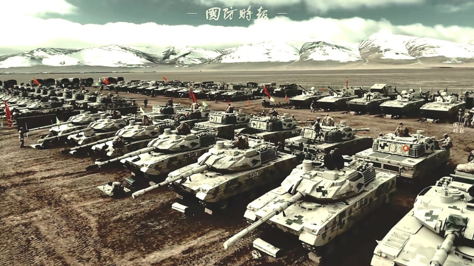 The footages—originally shared by defense observer Jesus Roman and other open-source analysts—show rows of Type 15 light tanks lined up on an open plateau at elevations above 4,500 meters, with snow-covered mountains in the background.