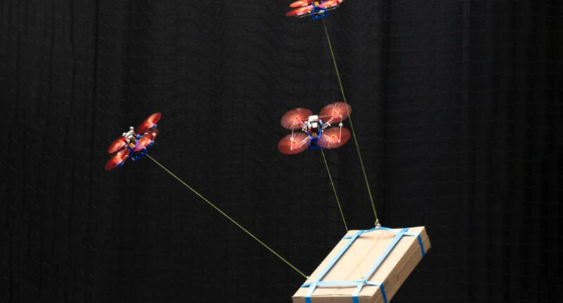 By linking drones via cables, the system enables them to share weight, compensate for disturbances, and transport loads too heavy for a single drone.