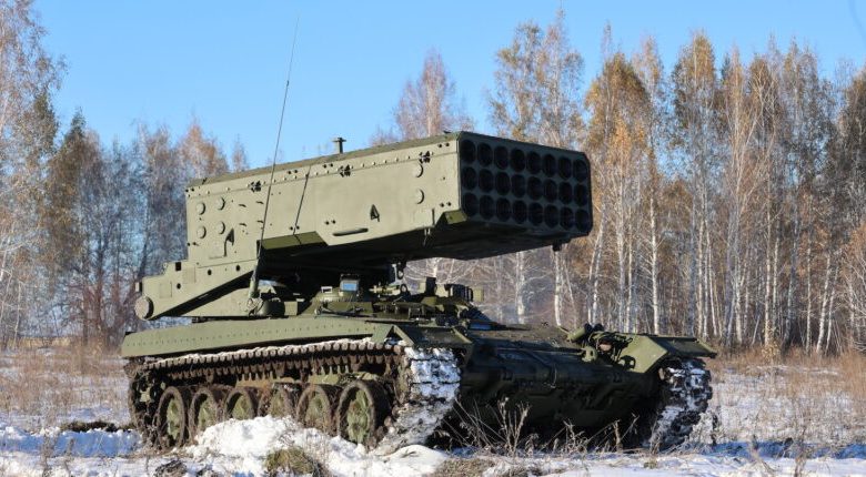 Mounted on a T-72 tank chassis, each flamethrower can unleash a salvo covering up to 40,000 square meters (430,556 square feet) within seconds.
